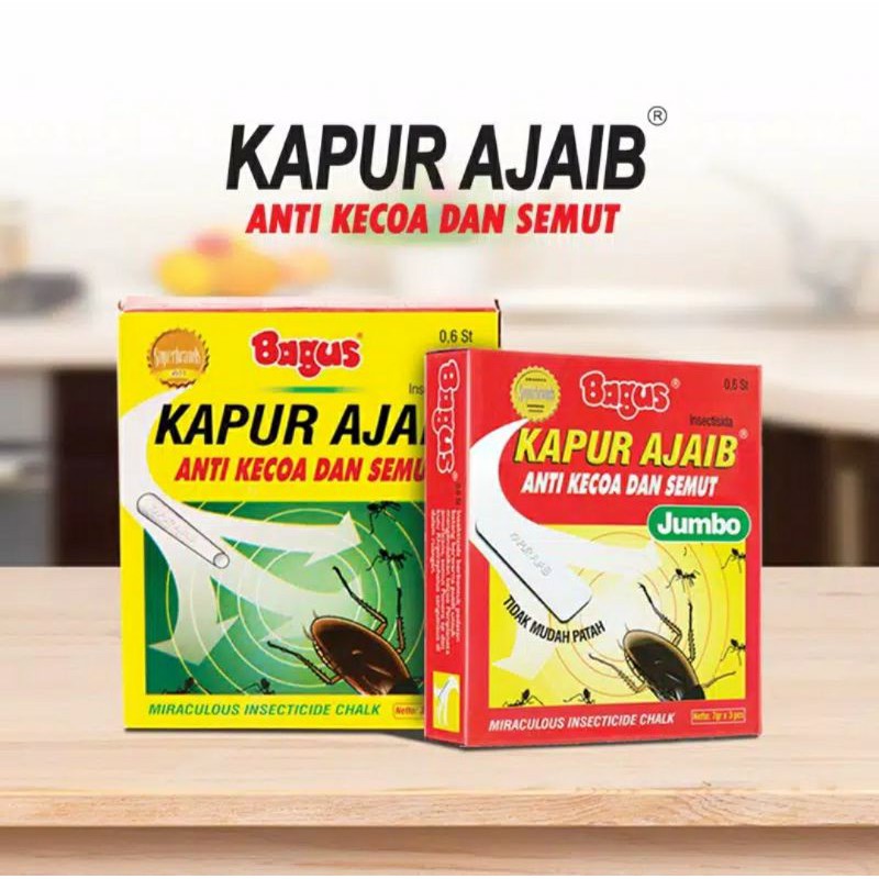 Bagus Kapur Ajaib merupakan produk insektisida berbentuk kapur tulis padat, efektif mengendalikan semut, kutu dan membasmi kecoa. Cocok digunakan di dapur, toilet dan daerah yang memiliki gangguan serangga semut atau kecoa.Unique selling point:- Mengendalikan semut dan kutu secara efektif- Membasmi Kecoa - Kapur lebih kuat dan tidak mudah patahCara kerja aktif :- Menghilangkan fungsi sistem saraf serangga dalam waktu ± 4 jam, dan setelah 10 jam serangga akan mati.Lama penggunaan :- Berfungsi selama goresan kapur masih adaIsi : 2 x Bagus Kapur Ajaib 6's Total isi Kapur : 2 x 2 x 6 Batang#bagus #kapur #ajaib #isi #12 #kecoa #insectiside #insektisidaNote :1. Jika ingin request warna/varian mohon untuk memberikan note pada pesanan , jika tidak ada note kami akan kirimkan dengan warna acak (random).2. Mohon untuk mengambil foto paket , Shipping Label dan Packing List pada saat paket diterima dari kurir.3. Mohon untuk tidak membuang Shipping Label & Packlist yang kami sediakan pada paket / pesanan, karena kedua dokumen tersebut dibutuhkan untuk melakukan complain pe