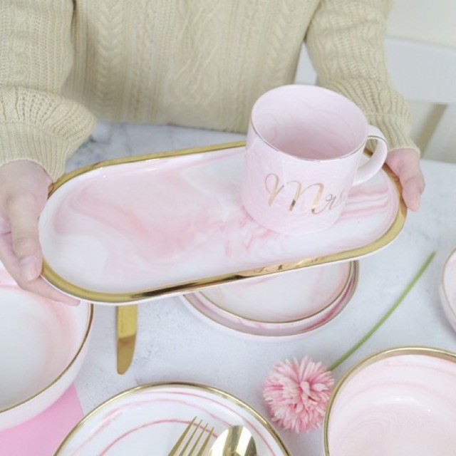 Name: Marble Pink Tray Keramik Oval / Tray Cake / Tatakan Lilin / Tray Serbaguna / Piring Kue