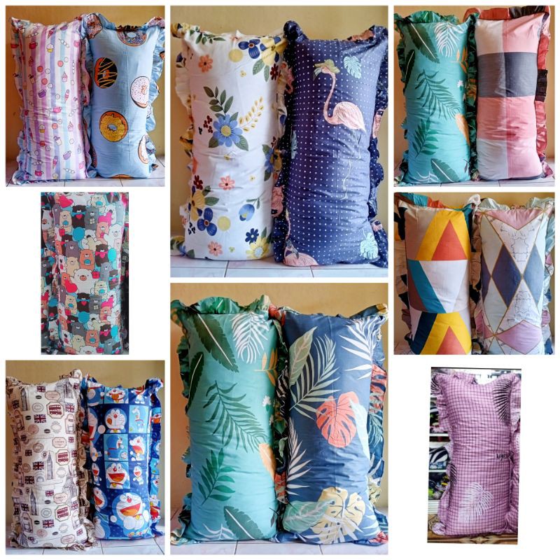 sarung bantal cinta bahan katun premium star/magenta/esra. uk 90x50motif ready sesuai et