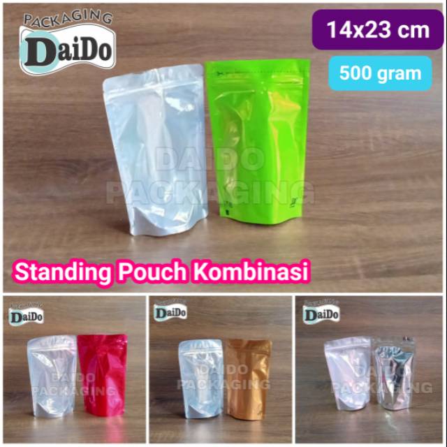 Harga diatas adalah harga satuan.Minimal order 100pcs dan kelipatan 100Yaitu :100/200/300/400 dst.Kurang dari 100 atau ganjil mohon maaf kami cancel ya kak==============Standing Pouch aluminium Foil kombinasi transparan 500 gram 14x23cmSpesifikasi :Model : Standing PouchDapat berdiriBahan super aluminium foil warnaDipadu bagian depan transparan.Foodgrade aman untuk makananPilihan warna :1.Putih doff2. Hitam doff3. Emas Gold doff4. Merah5. Hijau6. Silver(Beri keterangan warna yang di inginkan waktu check out order ya)Ukuran :14x23 cmPanjang 14cmTinggi 23cmDilengkapi :1. zipper/ziplock jadi tinggal klip saja.Untuk kedap udara dan Dobel aman bagian ujung bisa dipress dengan sealer (press plastik)2. Ada tanda gunting di sini3. Ada tanda foodgrade Kapasitas :Gula pasir 500grBiji kopi dan Bubuk kopi 250-300gr (tergantung bentuk biji kopi)Keripik 100-150 grBerat 10 gram / pcLike dan share produk toko kami ya#standingpouch #standpouch #plastikklip #kantongplastik #kemasankopi #