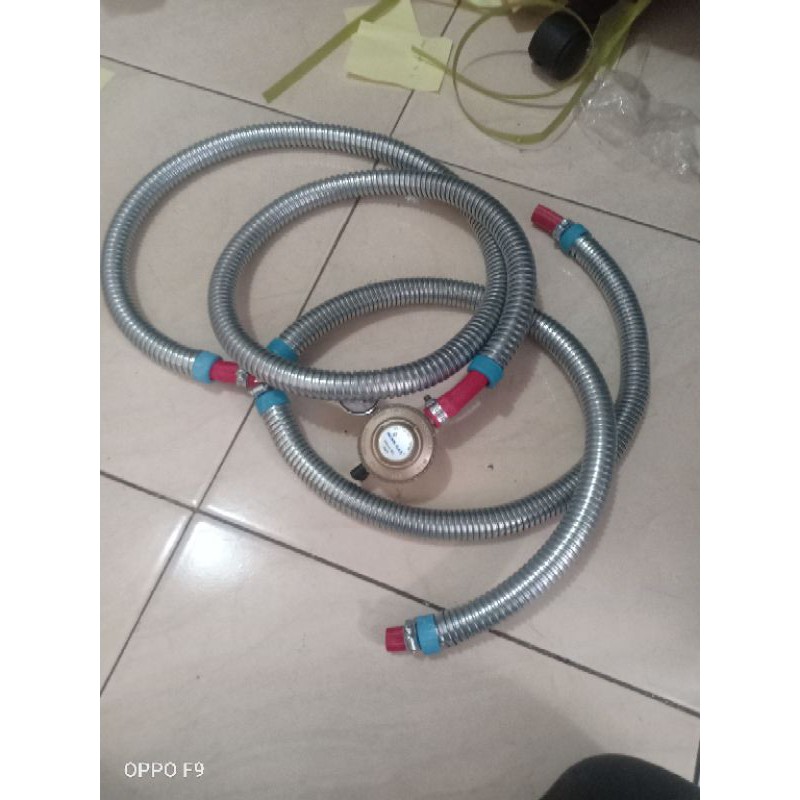 Selang oven gas / untuk kompor gas 2kompor jadi 1tabung Selang cabang 3 + regulator low pressure/tekanan rendahDilengkapi dengan pengaman spiral lapisan Anti tikus jadi lebih amanPanjang selang 250cmUkuran 150x50