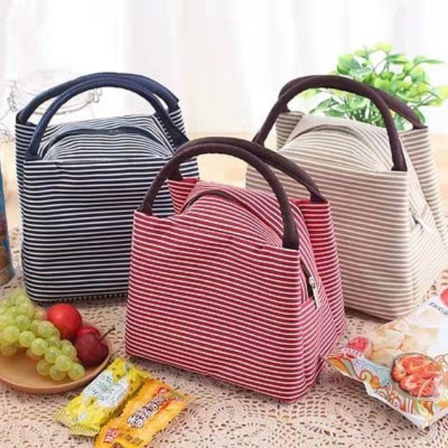 Tas Bekal Lunch Bag Garis================================Tas Bekal | Lunch Bag Garis, Tas Yang Berbahan Canvas, Dengan Tempat Yang Luas. Cocok Untuk Dibawak Piknik, Dengan Motif Bergaris. Dan Pilihan Warna :- Red- Light Brown- Dark Brown- Blue================================Sebuah Lunch Bag / Tas Bekas yangBerbahan : CanvasBerat : 140 Gram Ukuran : 23cm x 15cm x 17cmHarga : Rp 50.400===========================