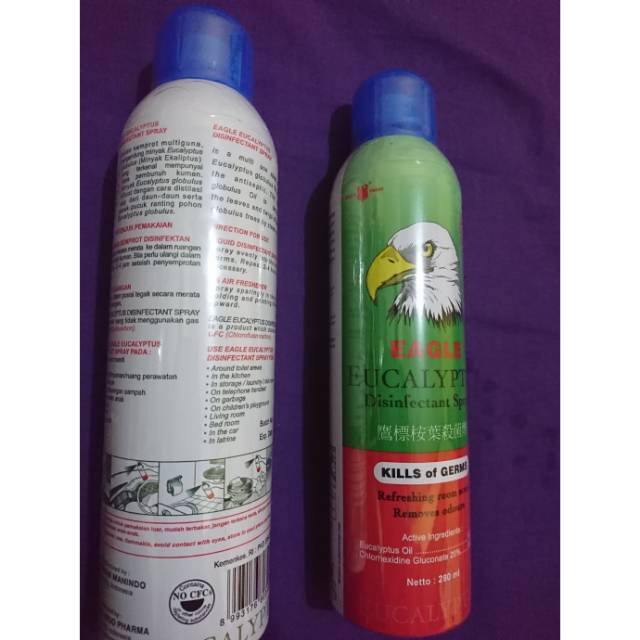 Eagle ecaliptus disinfectan spray 280mlCairan semprot multiguna mengandung mak eucaluptus globulus (minyak ekaliptus)Yg terkenal mempunyai daya guna pembunuh kuman.Cara pakaiSemprotkan secata meraha keseluruh rua