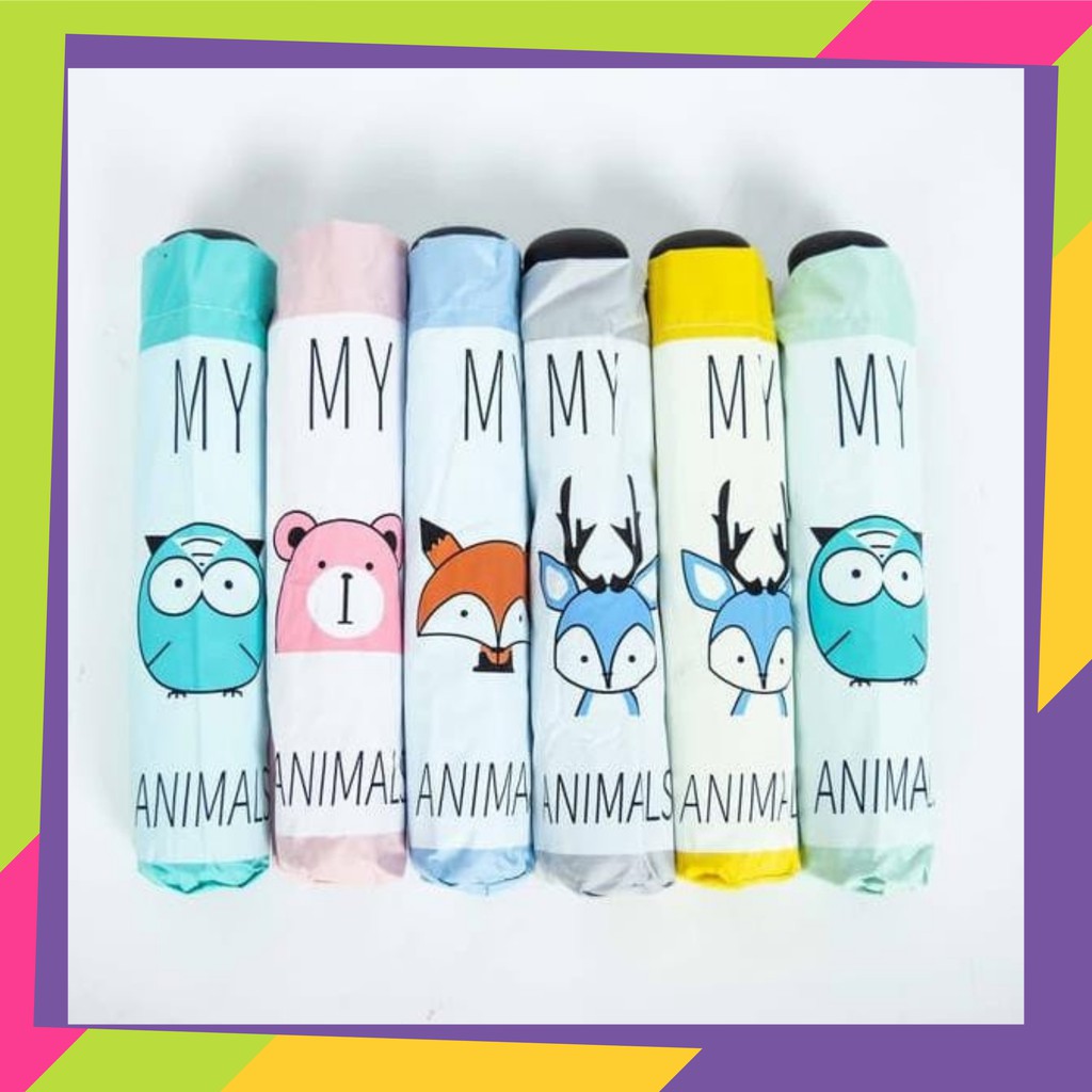 Name: 733 / Payung Grc Lipat 3 Motif Animals / Lapisan Hitam Anti Uv